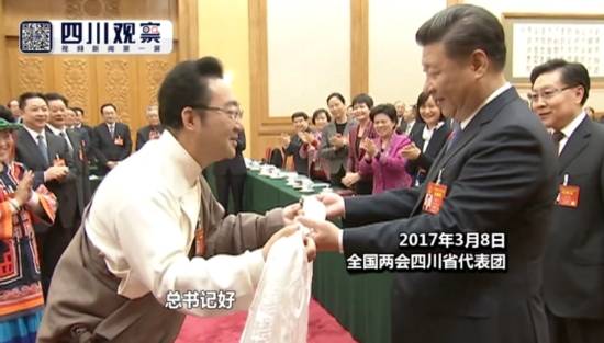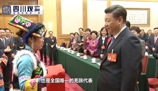 犹记去年今日,总书记走进会场时,身着民族服装的藏族、彝族、羌族代表向习近平总书记问好。藏族、羌族代表分别献上了洁白的哈达和鲜艳的羌红,表达对习近平总书记的敬意,祝福中华民族繁荣昌盛。习近平请他们转达对各族同胞的祝福。