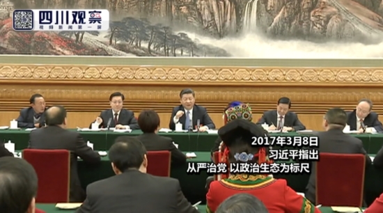 习近平在四川代表团指出,政治生态是检验我们管党治党是否有力的重要标尺。习近平强调,营造风清气正的政治生态,是一项持久的工作,深层含义就是“长”“常”二字,在全过程和各方面抓严抓实。