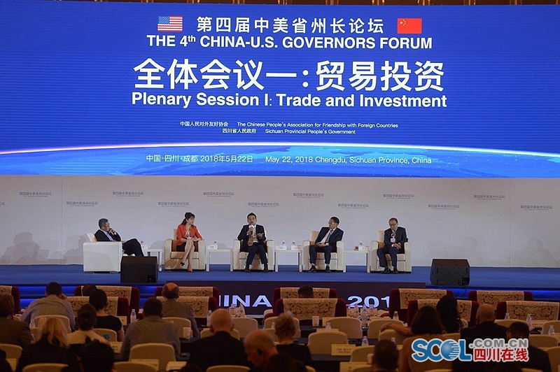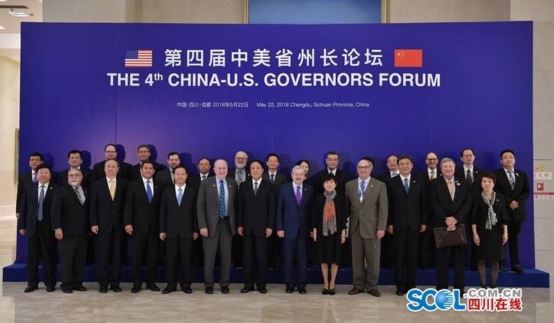 四川在线消息(记者 张守帅 摄影 欧阳杰 田为 郝飞)5月22日上午,以“坚持合作共赢 共同发展进步”为主题的第四届中美省州长论坛在成都开幕。全国人大常委会副委员长武维华、美国驻华大使布兰斯塔德分别作主旨发言,中国人民对外友好协会会长李小林、四川省委书记彭清华分别致辞,美国阿拉斯加州州长沃克和黑龙江省委副书记、省长王文涛等出席开幕式,四川省委副书记、省长尹力主持开幕式。