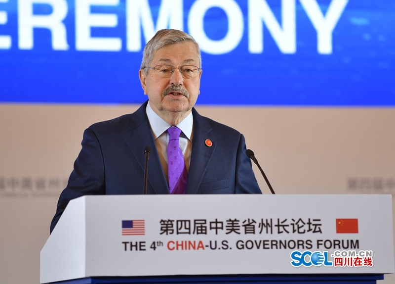 布兰斯塔德在主旨发言中说,非常高兴来川出席第四届中美省州长论坛,这一平台和机制让美国与中国的地方政要、企业家走到一起,面对面沟通交流,共同推动中美两国地方间建立更加密切的合作关系,为双方各领域合作提供了重大机遇。美国和中国是世界上最大的两个经济体,美中关系健康发展对全世界具有重大影响。美中两国州省间合作是两国关系发展的基石。我非常自豪连续四届出席论坛。这个难得的经历让我深切体会到,美中州省长间的对话机制在促进两国地方间贸易投资、文化交流特别是农业、环保、教育、文化、体育合作方面发挥了重要作用,也给两国人民带来了真切实惠。本次论坛将在贸易投资、绿色发展和创新经济等方面继续进行务实探讨,相信一定会取得新的成果。