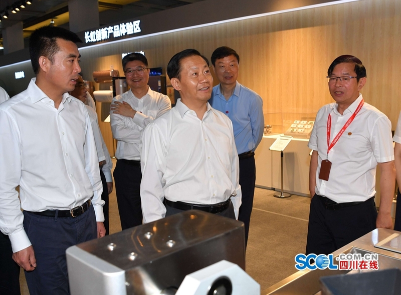 在长虹集团多媒体产业公司、九洲集团创新展示中心,彭清华走进工厂车间,察看企业生产线和智能科技产品,了解企业深化改革、结构调整、技术研发等情况,鼓励企业抢抓全面创新改革试验和军民融合深度发展等重大机遇,准确把握产业转型、市场变化、消费升级的趋势,加快关键核心技术联合攻关和成果转化应用,大力推动技术创新、产品创新、业态创新、管理创新、服务创新,为振兴民族工业、做强四川品牌贡献更多力量。
