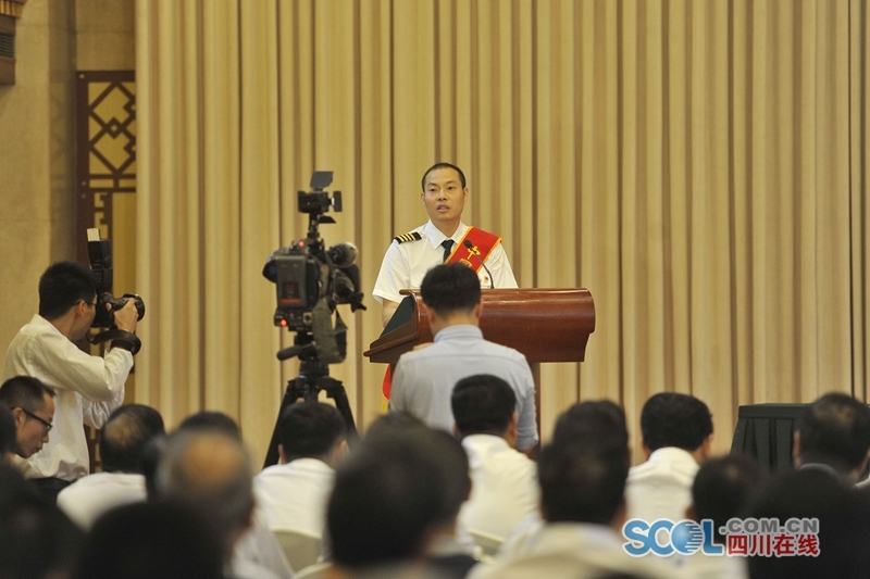 四川在线消息(记者 王眉灵 梁现瑞 熊筱伟 摄影 欧阳杰 杨树)6月8日下午,四川省、中国民用航空局成功处置3U8633航班险情表彰大会在金牛宾馆隆重举行。川航3U8633航班机组被授予“中国民航英雄机组”称号!机长刘传健被授予“中国民航英雄机长”称号,并享受省级劳动模范待遇。