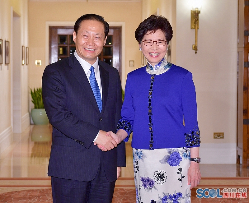 林郑月娥欢迎彭清华率四川代表团来港考察。她说,今年5月我到四川考察期间,两地建立了合作会议机制,开启了全方位交流合作新篇章。这次彭清华书记又应邀率四川代表团来港考察,必将进一步推动香港与四川各领域合作迈上新的台阶。我对双方未来合作充满信心。香港与四川有很好的合作基础,人民交流交往密切,经济互补性也很强,在科技创新、金融服务、现代物流、航空海运、生物医药、生态环保等领域深化合作的空间十分广阔。特区政府将以务实的态度推进合作机制落地落实,积极参与西部地区陆海大通道建设,支持更多知名企业和品牌到四川落户发展,持续密切两地青少年交流交往,推动两地共同繁荣发展。