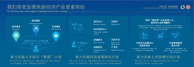 坚持以配置效率替代规模依赖,放手推进新经济要素供给侧结构性改革,构建最适宜新经济发展的要素供给体系。着力招引“蓉漂”人才,科学描绘全球高层次人才分布图,构建全环节人才服务链,加快人才公寓和国际高端社区建设,对来蓉发展的香港高端人才给予出入境与居留、租(购)房、子女教育等政策支持。着力实施科技成果转化计划,有效整合蓉港科技研发资源,共建研究中心、实验室、技术转移中心,全面打通基础研究、应用开发、成果转化及产业化链条。着力实施上市倍增行动计划,与香港共同举办金融论坛及路演活动,筛选组织独角兽企业赴港上市、新经济企业赴港融资,积极探索开展股权基金合作。