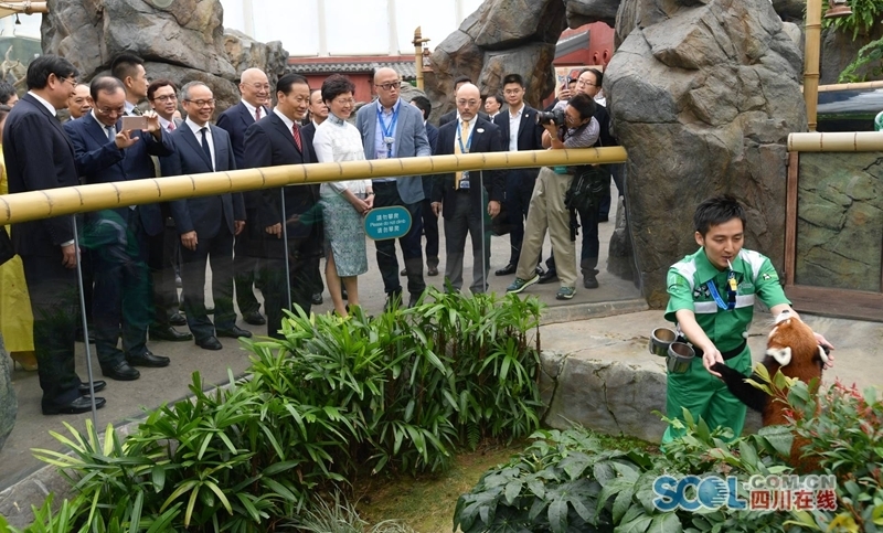8日上午,省委、省政府在香港海洋公园举行2018四川自然保护周开幕典礼。林郑月娥在致辞中指出,川港两地在生态保护、文化旅游、青年交流等方面合作起步很早,特别是汶川地震后特区政府采取“对口支持”模式援建了卧龙中华大熊猫苑等一系列标志性项目,把两地合作提升到了新的水平。下一步,特区政府将继续支持两地在生态保护、青年交流等方面加强合作。彭清华在致辞中表示,四川是长江上游重要生态屏障和水源涵养地。省委、省政府坚定走生态优先、绿色发展之路,巴蜀大地正绽放独特的自然生态之美。热情欢迎香港各界人士到四川观光旅游,感受优美自然风光和独特民俗风情。香港中联办副主任杨健也作了致辞。启动仪式结束后,林郑月娥、彭清华等一同前往海洋公园亚洲动物天地,探望中央政府赠港的川籍大熊猫盈盈、乐乐。
