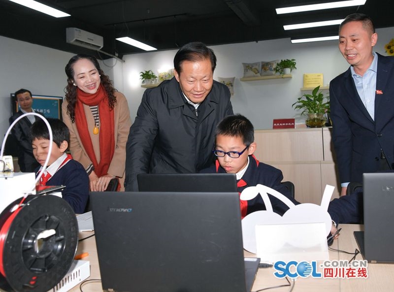 彭清华十分关心中小学教育改革工作。在成都七中林荫校区,他来到网校导播中心、学生发展中心、生命科学实验中心,与正在那里开展教学科研活动的师生面对面交流,聊学习、谈梦想,一起操作实验仪器、观察数据结果。在成都市实验小学,彭清华走进“记忆长廊”、电脑机器人工作室、学校导播中心、创客中心、博雅书馆,详细了解基础教育改革、素质教育推进、创新人才培养、贫困地区远程教学、传统文化教育等情况。彭清华说,教育是民族振兴、社会进步的重要基石,事关国家发展和民族未来。要全面推进素质教育,努力构建德智体美劳全面培养的教育体系,不断增强学生综合素质和综合能力,培养好社会主义建设者和接班人。要深化教育改革,加快形成充满活力、富有效率、更加开放、有利于高质量发展的教育体制机制,促进各类教育均衡发展。