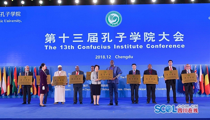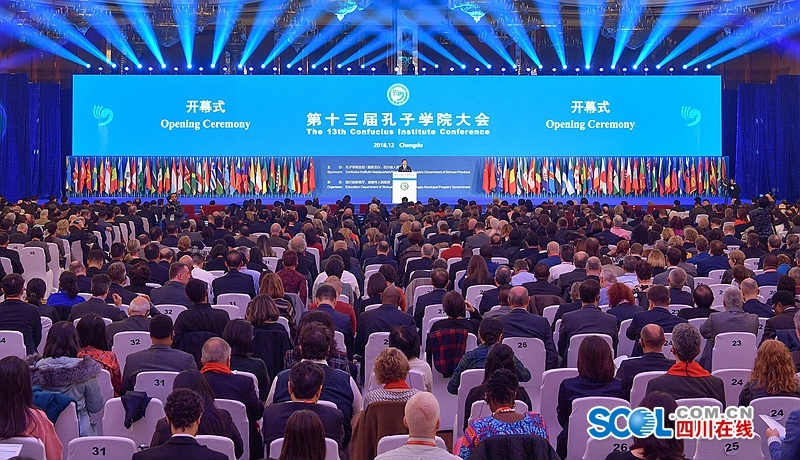 综合新华社四川在线消息(记者 张守帅 摄影 欧阳杰)12月4日,第十三届孔子学院大会在成都举行,来自154个国家和地区的1500多名代表参加大会。国务院副总理、孔子学院总部理事会主席孙春兰出席开幕式并作主旨演讲。