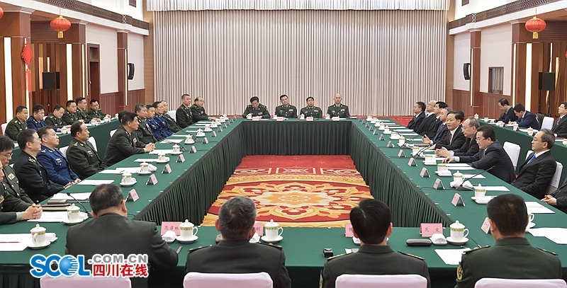 彭清华指出,过去一年,驻川部队坚定以习近平新时代中国特色社会主义思想和习近平强军思想为指导,坚决贯彻党中央、中央军委和习主席的决策指示,紧扣党在新时代的强军目标,时刻牢记人民军队根本宗旨,在抓紧军事斗争准备的同时,积极服务全省大局,挑起了抢险救灾重担,维护了社会和谐稳定,树立了为民爱民形象,支持了地方改革发展,展现了人民军队英雄本色,书写了军民鱼水情的新篇章。新的一年里,希望驻川部队继续抓好主业,进一步加强军地对接合作,协力推进军民融合深度发展,共同做好应急处突、反分维稳、反恐防暴、脱贫攻坚、乡村振兴等工作,为推动治蜀兴川再上新台阶作出新的更大贡献。我们将一如既往支持国防和军队改革发展,带着感情、带着责任推进双拥共建,及时研究解决国防后备力量建设重大问题,认真做好优抚优待、转业安置、家属就业、子女入学、文职人员落户等工作,不断巩固发展同呼吸、共命运、心连心的新型军政军民关系。
