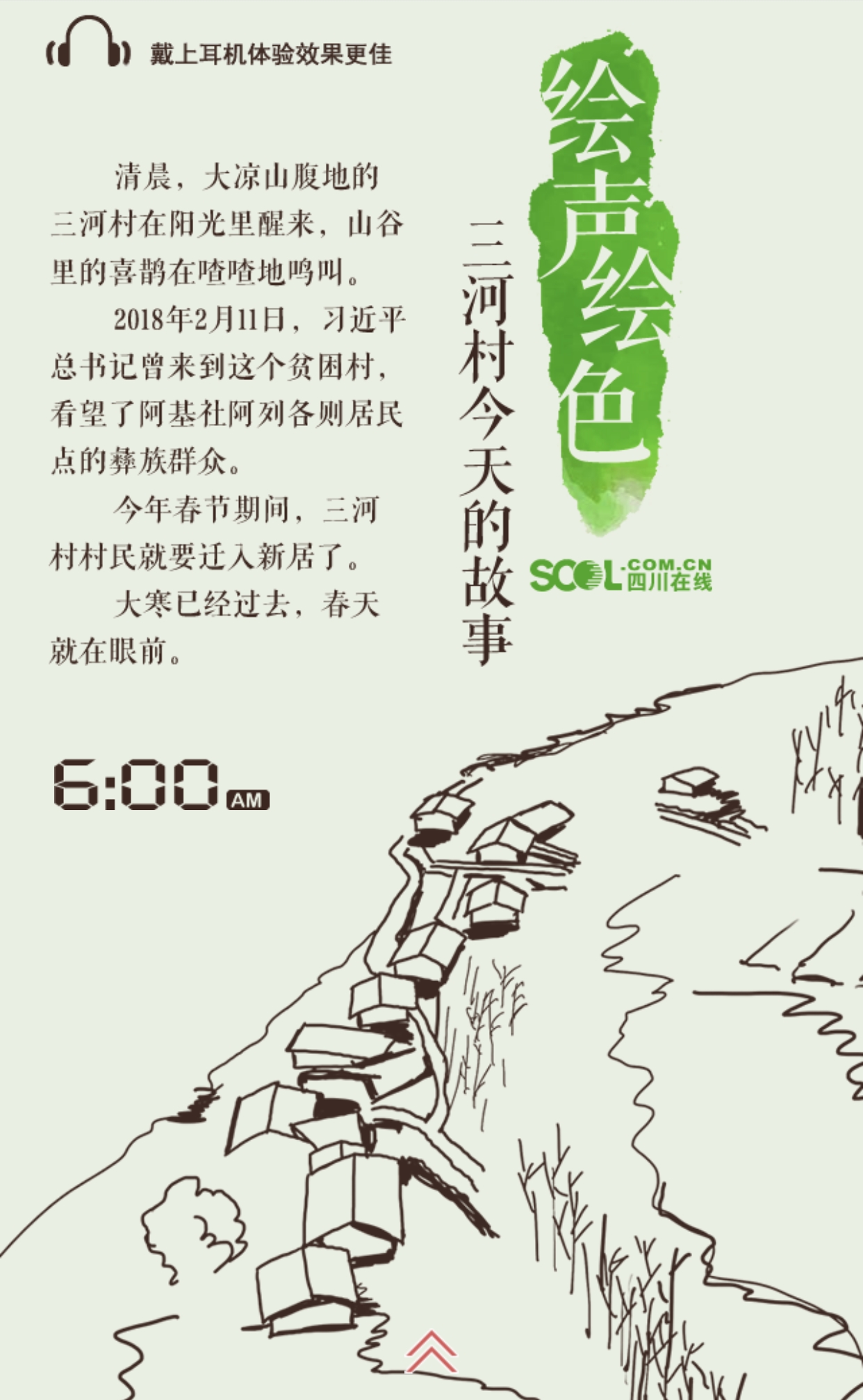 节后首个工作日,人民日报在头版头条“总书记的深情牵挂——来自贫困乡村的精准脱贫故事”专栏下,刊登《四川昭觉县三河村——产业兴旺火塘暖 文明卫生气象新》。文章分为三部分:面对前所未有的政策支持力度、综合帮扶力量,感恩奋进响彻大凉山;一村一幼,知识改变命运的观念在大凉山深处萌生;移风易俗,大凉山腹地延续千百年的陈规陋习正被改变。