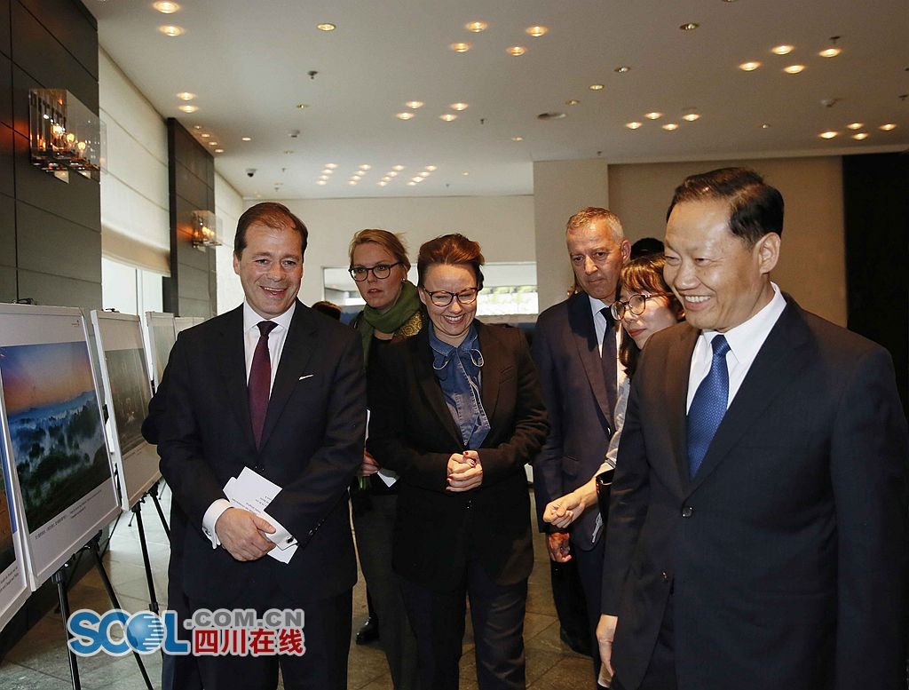 当地时间五月二十二日,省委书记、省人大常委会主任彭清华与嘉宾在德国柏林参观四川省情图片展。