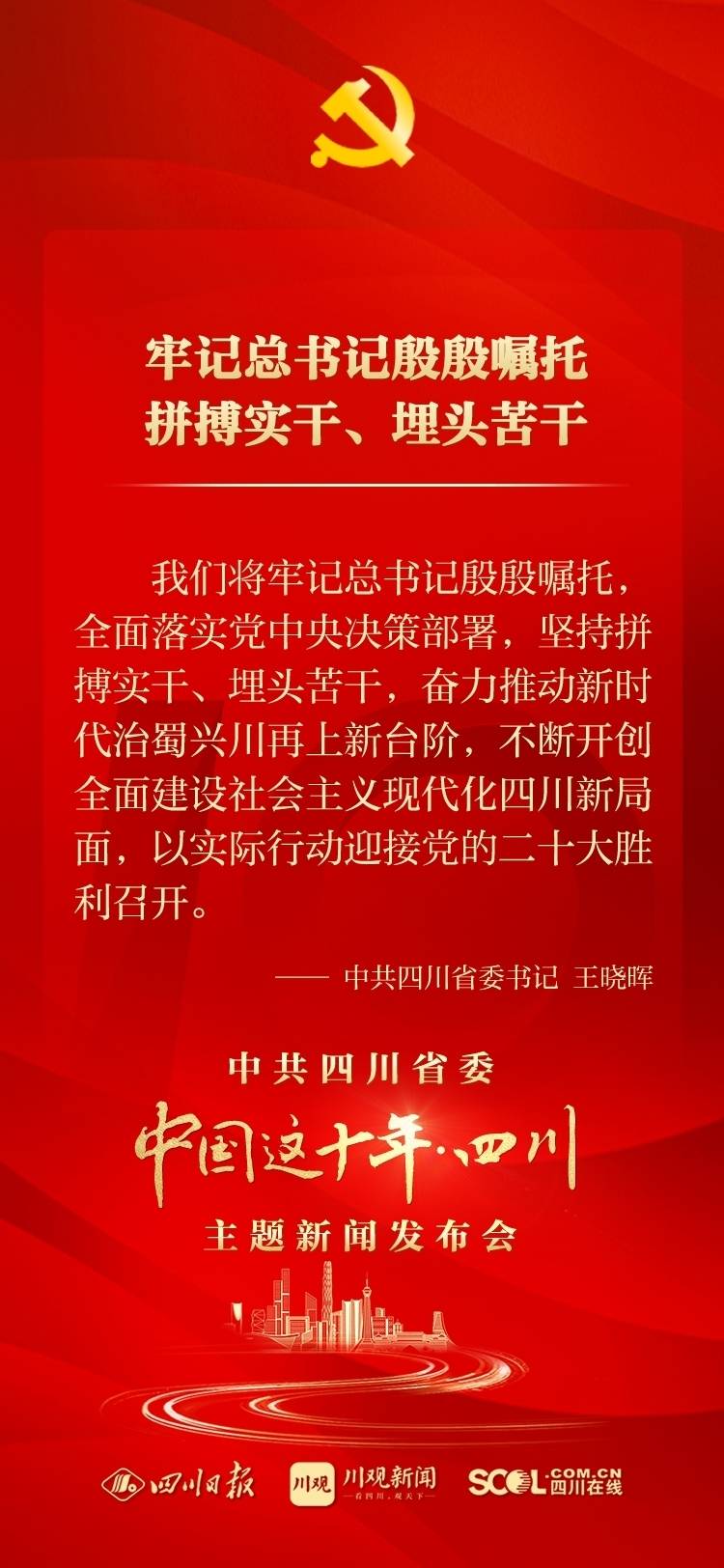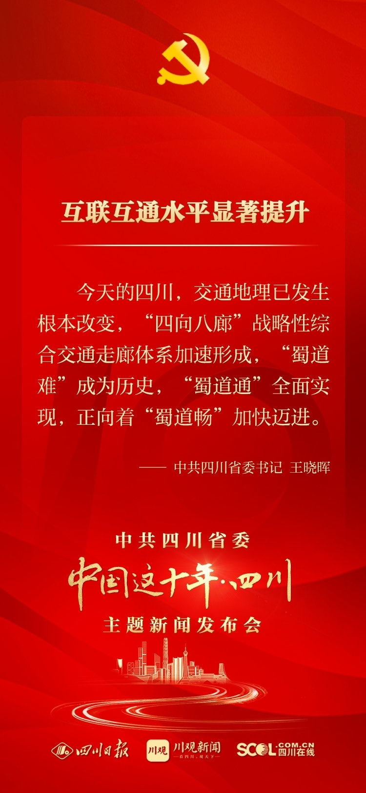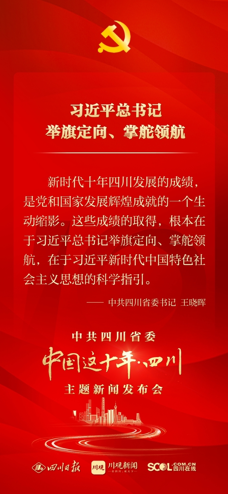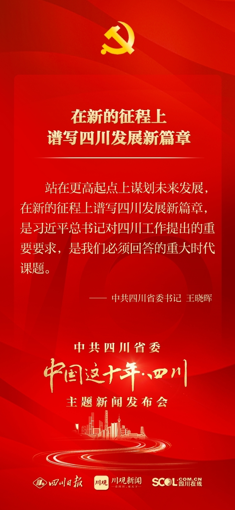 8月18日,中共四川省委“中国这十年·四川”主题新闻发布会举行。省委书记王晓晖作主题发布时,用翔实的数据对比和典型的事例说明,从六个方面介绍了这十年四川改革发展成就。王晓晖说,新时代十年四川发展的成绩,是党和国家发展辉煌成就的一个生动缩影。