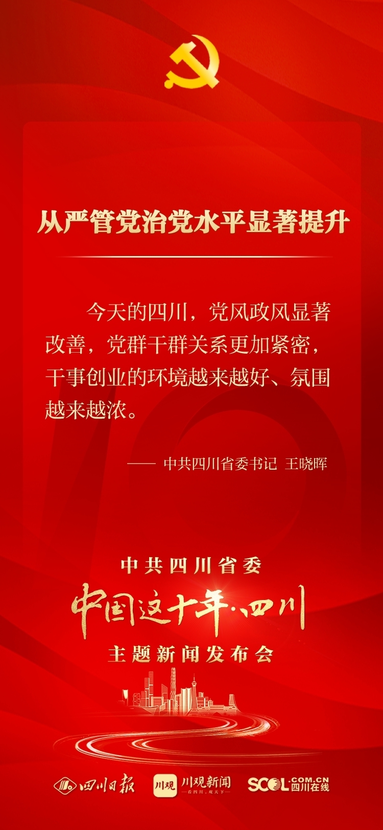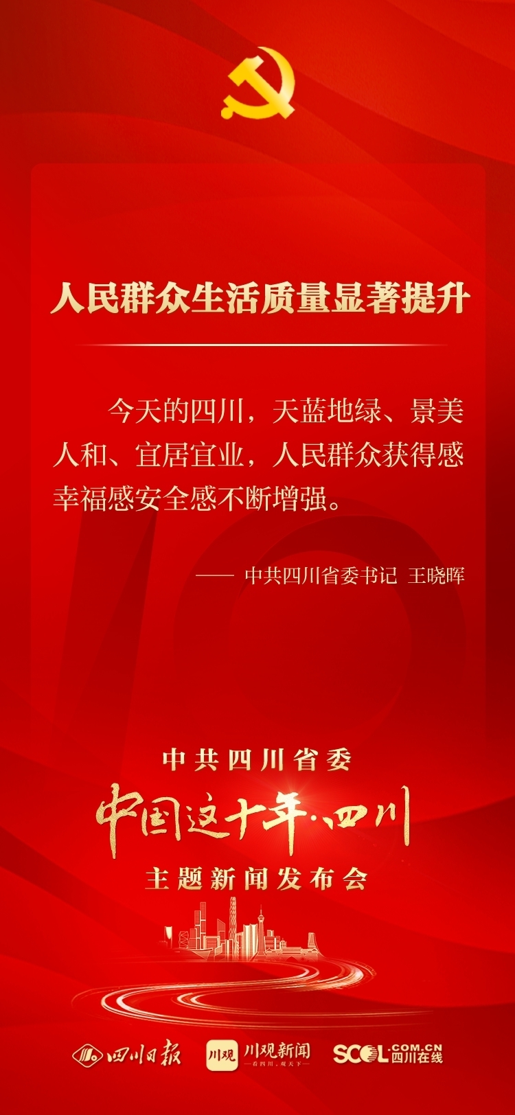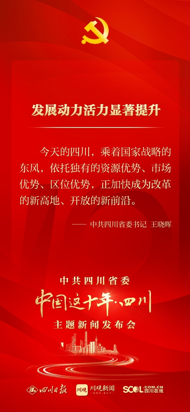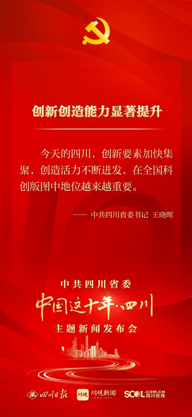 8月18日,中共四川省委“中国这十年·四川”主题新闻发布会举行。省委书记王晓晖作主题发布时,用翔实的数据对比和典型的事例说明,从六个方面介绍了这十年四川改革发展成就。王晓晖说,新时代十年四川发展的成绩,是党和国家发展辉煌成就的一个生动缩影。