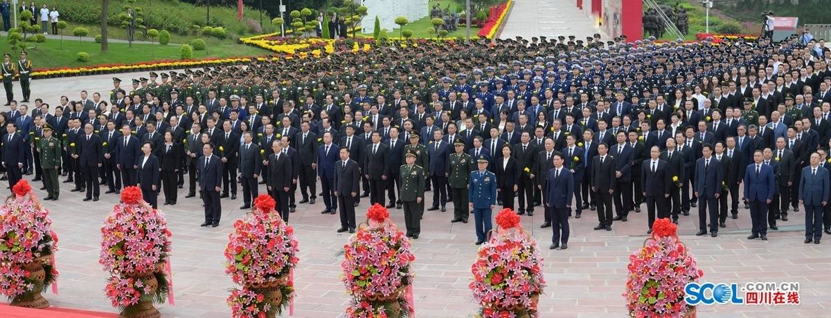 施小琳主持敬献花篮仪式。省委、省人大常委会、省政府、省政协有关领导,省法院院长、省检察院代理检察长,驻蓉副军级以上单位领导,成都市有关领导,省直各部门(单位)负责同志,各民主党派省委会、省工商联负责人和无党派人士代表,烈士遗属、老战士和退役军人代表,成都市机关干部、公安干警、消防指战员、医护人员和各界群众代表,师生代表和驻蓉部队官兵代表等参加仪式。