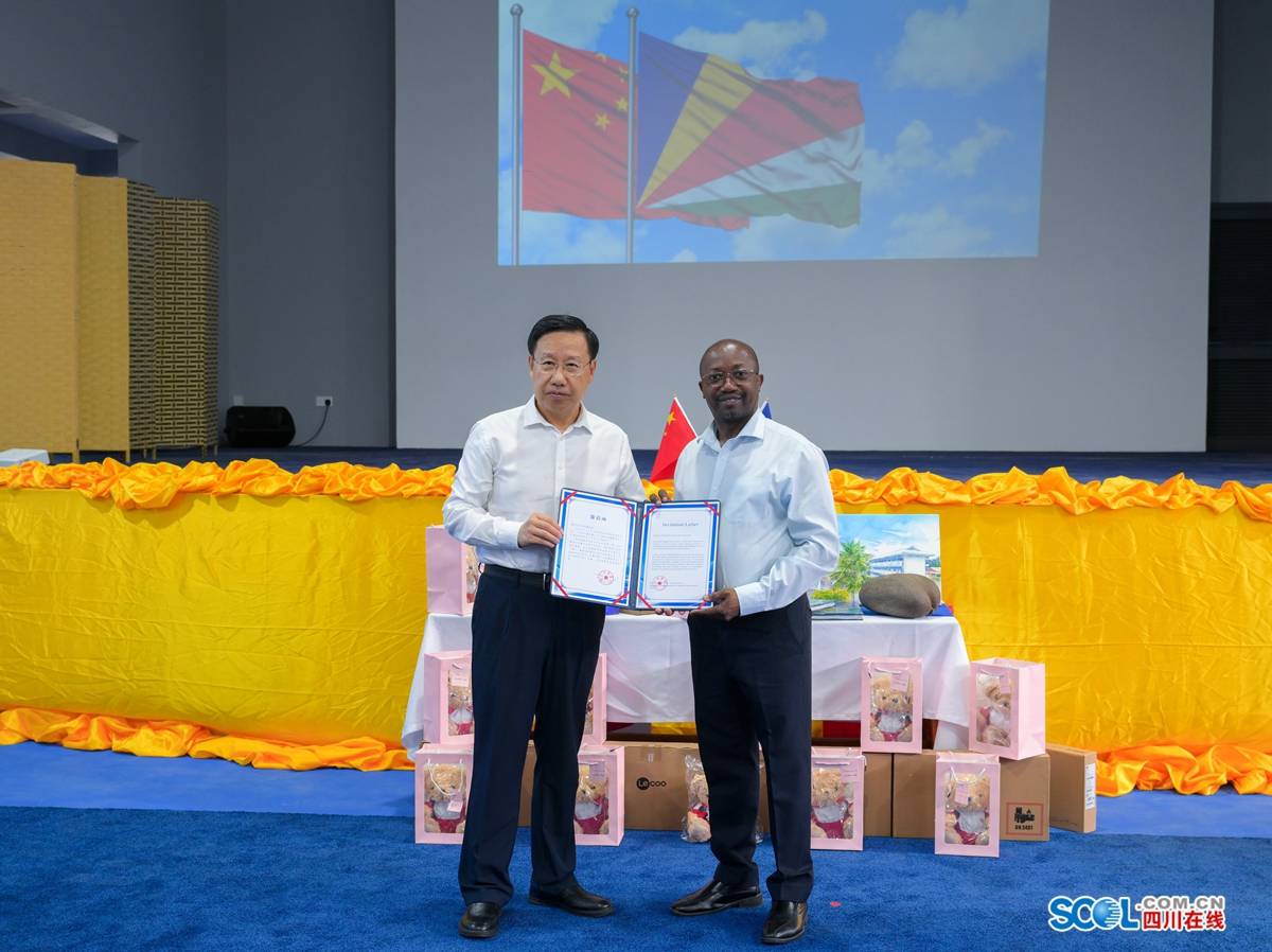交流会上,成都市与维多利亚市签署建立友好城市关系协议并赠送彩绘大熊猫雕塑,教育厅与塞舌尔教育部签署教育发展合作谅解备忘录,双方有关企业签署贸易合作项目协议和旅行社战略合作协议;我省向塞方发布了奖学金和游学交流名额,3所高校和3所中小学校分别与塞方有关教育机构建立合作关系,四川发展(控股)有限责任公司向塞舌尔卫生部捐赠医疗设备。