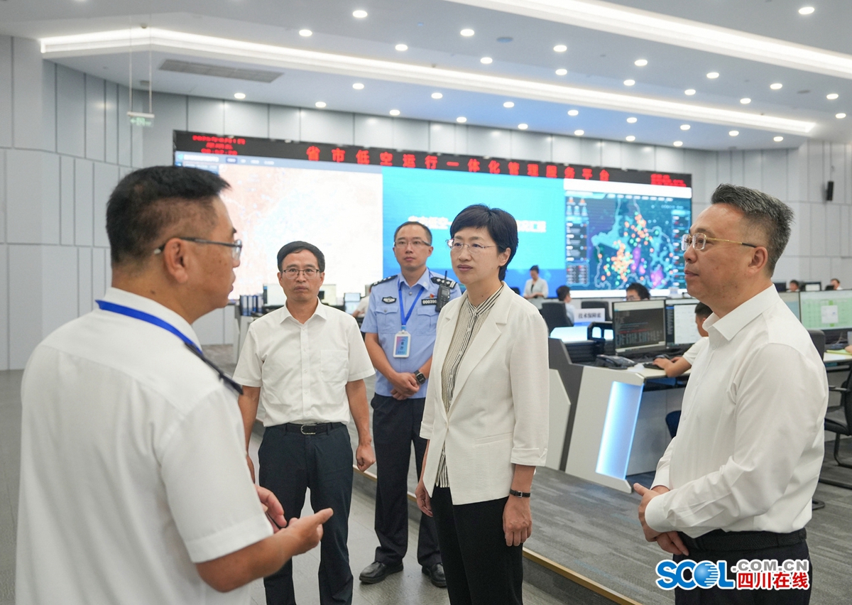 省委副书记、省长施小琳在省低空空域运行服务中心察看了解世运会期间重点区域低空空域安全管理、突发事件应对处置等情况。