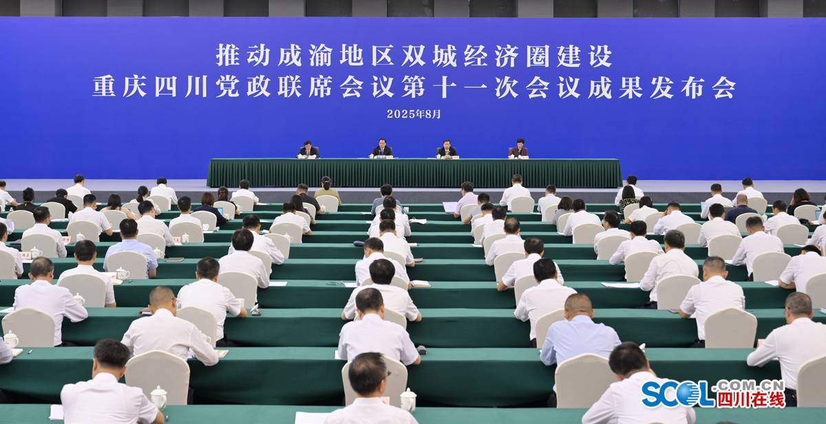 发布会前,两省市召开座谈会分别通报了2025年上半年经济社会发展情况,听取了《〈成渝地区双城经济圈建设规划纲要〉实施情况总结报告》情况、《成渝地区双城经济圈建设“十五五”建议实施方案》情况、重庆成都双核联动联建推进情况的汇报,审议了《川渝共建国际消费目的地行动计划(2025—2027年)》《关于支持保障成渝金融法院改革发展的方案》《重庆四川推动成渝地区双城经济圈建设工作机制》。
