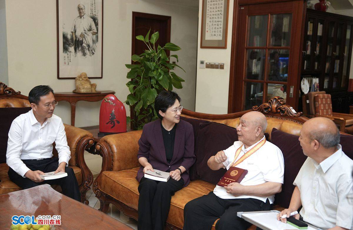 施小琳来到101岁高龄的老同志廖伯康家中,代表省委、省政府致以敬意和问候,感谢他为民族独立解放和四川建设发展作出的积极贡献,并介绍全省经济社会发展情况,听取对做好四川工作的意见建议,表示将汲取宝贵经验,在老同志们打下的坚实基础上,扎扎实实推动四川高质量发展不断取得新成效、人民群众过上更加美好的生活。施小琳还来到省人民医院草堂院区,看望正住院治疗的102岁抗战老战士陈开义,送上党和政府的关怀问候,询问老人身体状况和生活情况,了解老人的峥嵘往事,叮嘱有关方面严格落实优抚政策、用心用情照顾好老战士们的晚年生活,共同从伟大抗战精神中汲取前行力量,传承发扬好老一辈的优良革命传统,更好肩负起推进现代化四川建设的时代重任。