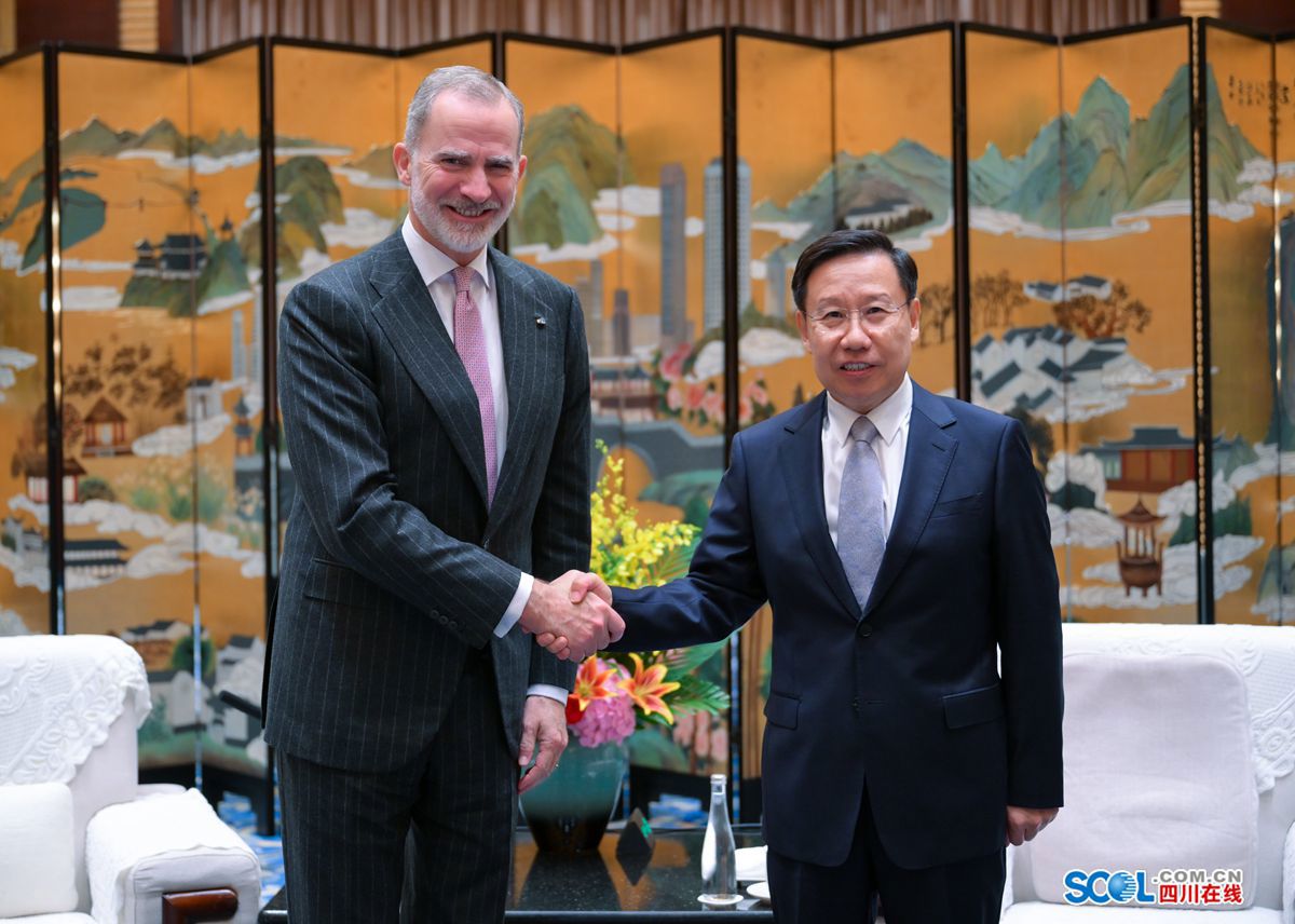 费利佩六世对四川经济社会发展取得的成就表示赞赏。他说,近年来,西班牙与中国始终相互尊重、友好合作,两国关系呈现积极良好发展势头。四川是中国西部的重要省份,与西班牙交流交往密切,双方在经贸、产业、人文等各领域发展互补性强、合作前景广阔。愿推动西班牙与四川建立更加紧密的合作关系,实现互利共赢发展,更好造福两地人民。