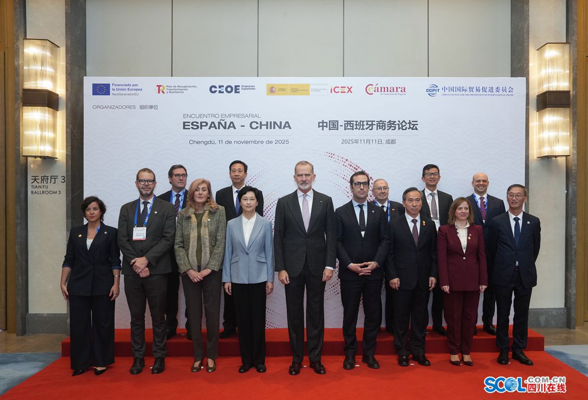 11日上午,中国—西班牙商务论坛在成都举行。费利佩六世出席论坛开幕式并致辞;施小琳和西班牙经济、贸易和企业大臣奎尔波,中国贸促会会长任鸿斌出席并先后致辞。