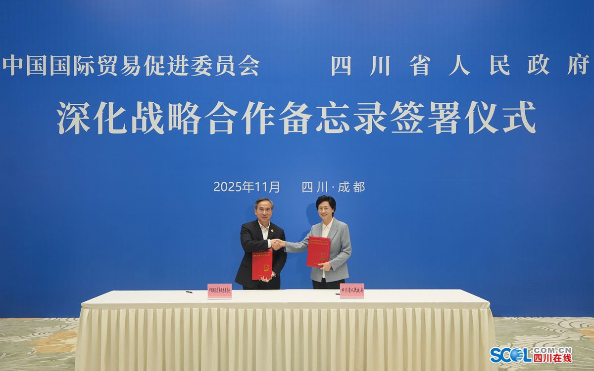 11月11日,四川省人民政府与中国国际贸易促进委员会在成都签署深化战略合作备忘录。省委副书记、省长施小琳,中国贸促会党组书记、会长任鸿斌分别代表双方签署协议。