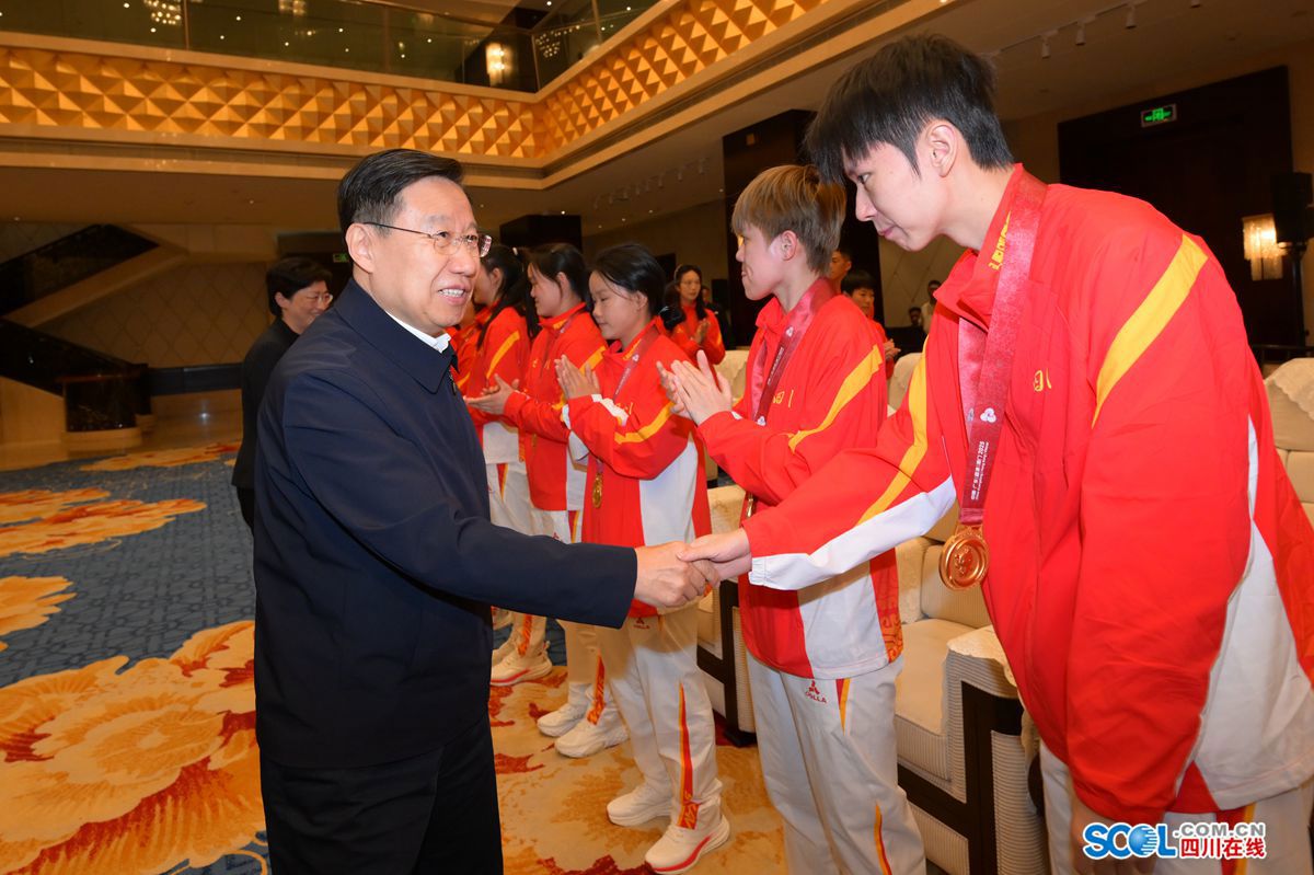 王晓晖指出,站在新的起点,党的二十届四中全会对未来五年发展作出顶层设计和战略擘画,全会通过的《建议》明确提出“统筹推进群众体育和竞技体育发展,加快建设体育强国”,为我们做好新时代体育工作指明了前进方向。推进体育强省建设,需要全省人民共同努力,更需要全省体育战线继续作出新的更大贡献。希望大家发扬连续作战的优良作风,认真总结参赛经验,科学做好备战训练,完成好各类参赛任务,努力在今后各类赛场取得新的优异成绩。希望大家发挥自身的榜样和表率作用,大力弘扬中华体育精神、践行社会主义核心价值观,以实际行动带动全民健身、青少年体育、体育产业蓬勃发展,更好助推四川体育强省建设。