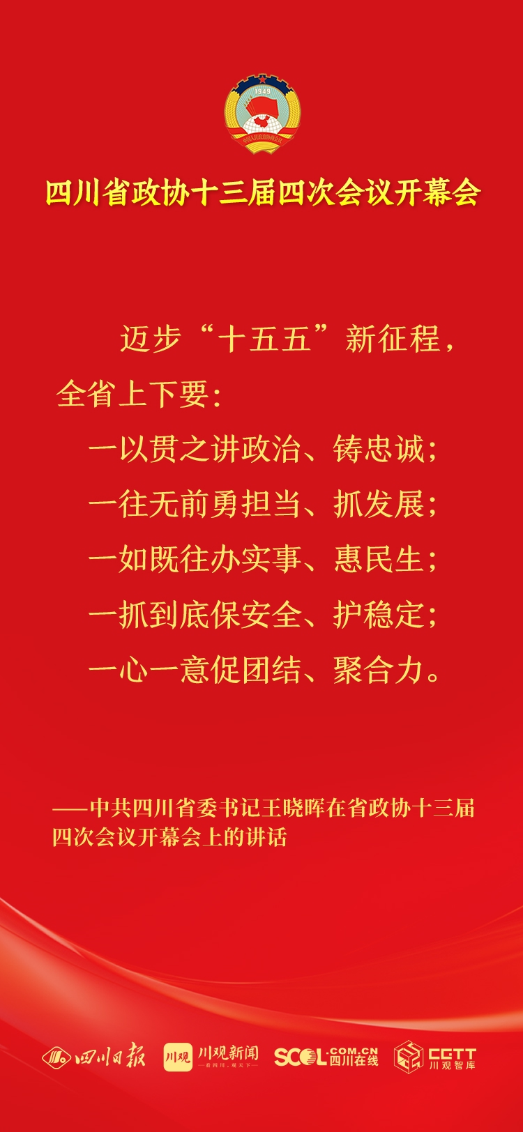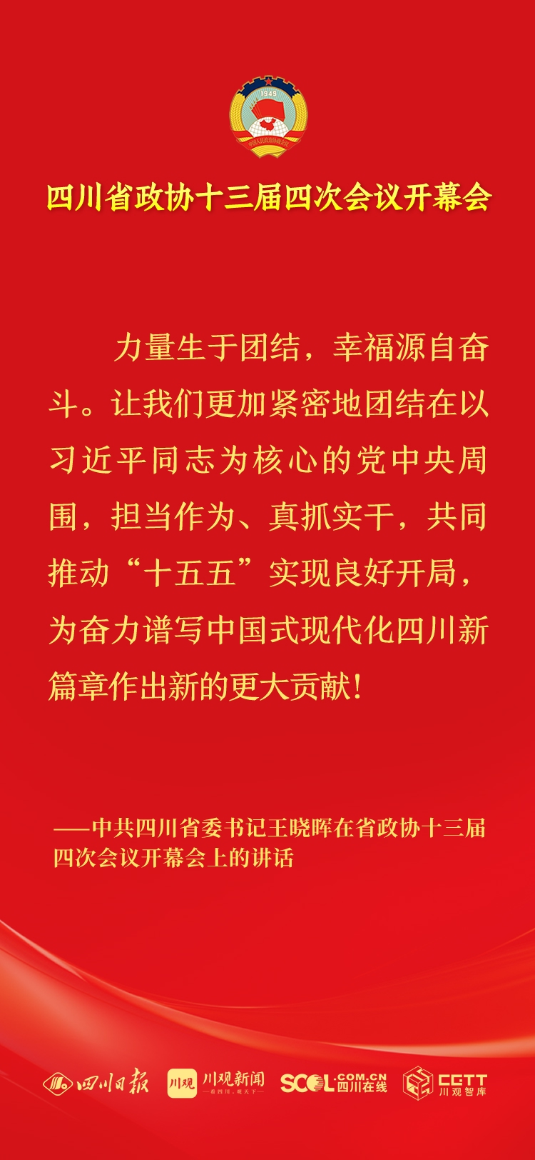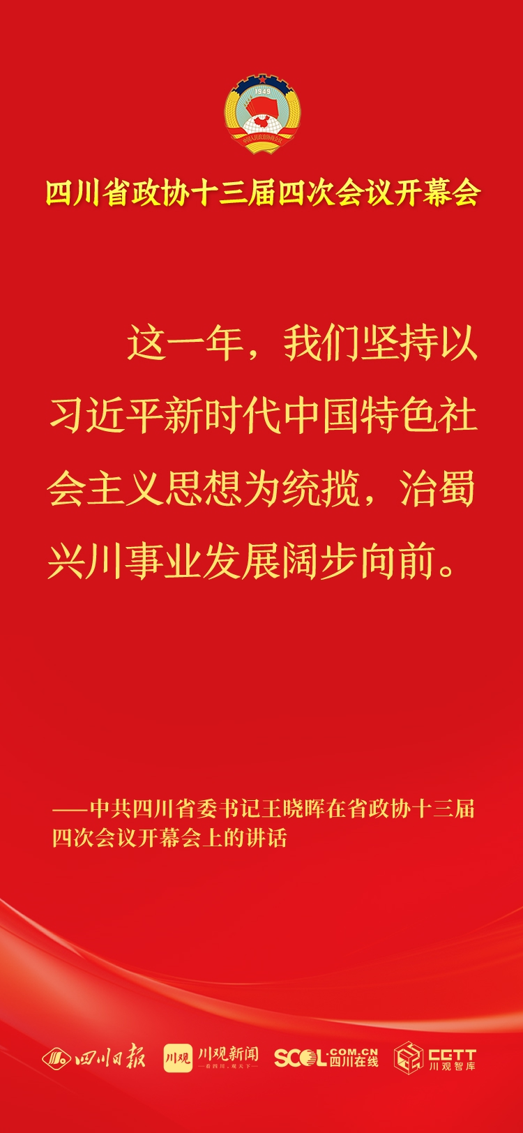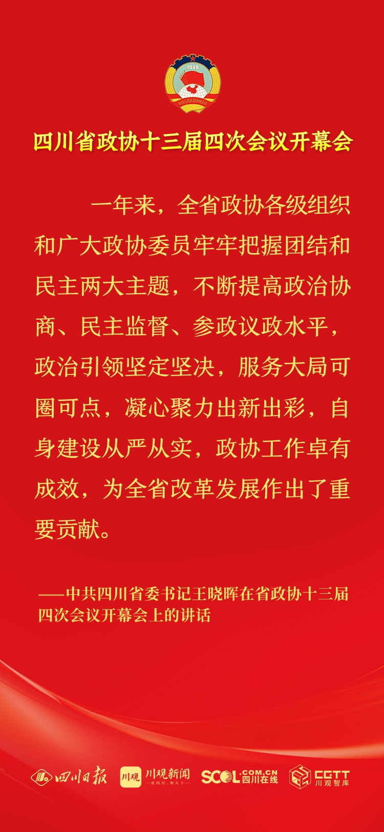2月2日上午,政协四川省第十三届委员会第四次会议在成都开幕,中共四川省委书记王晓晖讲话。
