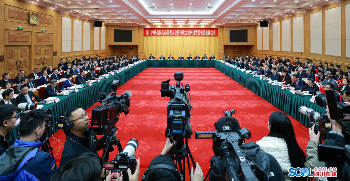 3月6日上午,十四届全国人大四次会议四川代表团在驻地举行全体会议,审查“十五五”规划纲要草案。省委书记、省人大常委会主任、代表团团长王晓晖主持会议,省委副书记、省长、代表团副团长施小琳参加。