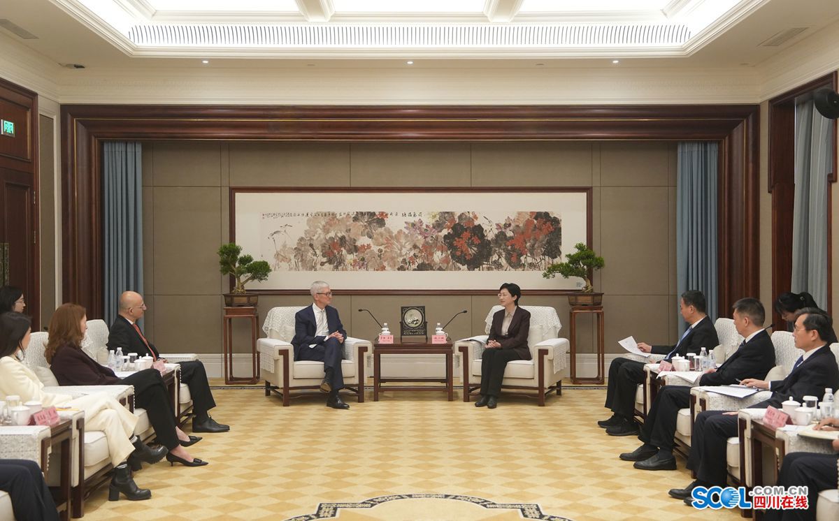 施小琳对苹果公司成立50周年并在成都成功举办亚太地区首场庆祝活动表示祝贺,向苹果公司对四川经济社会发展作出的贡献表示感谢。她说,当前我们正贯彻落实全国两会精神,推动全年工作和“十五五”高质量开局起步。四川资源禀赋独特、产业基础厚植、创新活力迸发、开放优势凸显、市场潜力巨大,特别是打造世界级电子信息产业集群,实施“人工智能+”一号创新工程,为包括苹果公司在内的广大外资企业在川发展提供了广阔空间。希望苹果公司巩固在川直营零售及渠道销售、苹果中国技术支持中心和供应链等项目发展基础,进一步研究探讨优化用户体验、完善上下游产业体系和科技创新方面合作布局,在推动高质量开放发展中互利共赢。我们将持续打造市场化法治化国际化营商环境,优化服务保障,为苹果公司及供应链企业发展创造更好条件。