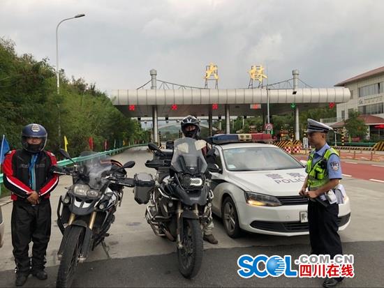 四川在线消息(记者 付真卿)10月5日下午15时许,成自泸高速公路成都方向二峨山隧道前车多排行,呈高峰状态。在路面保畅点执勤的四川高速交警在路面上拦下两辆违规进入高速公路的摩托车。两人自称是骑行至东南亚旅游后返回成都,从云南上的高速。不过,根据四川省相关法律规定是不允许摩托车进入高速,随后民警对两人分别给予罚款100元记3分的处罚,并护送其从就近收费站驶出高速。
