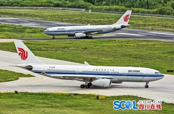 图为:执行航班飞行任务的国航西南分公司空客A330飞机
