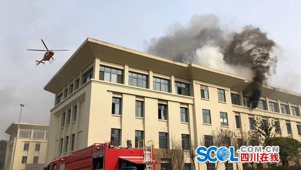 在救护工作进行的同时,天府公安经过有效的处置,已经将暴恐分子抓捕,正押解上警车。很快,救援直升机将民兵救援人员的担架吊挂至受伤人员地点,与消防人员将伤员安放在外吊担架内,两名民兵救援人员合力将外吊担架护住,救援工作顺利完成。此时,消防分队开始全面灭火作业工作……