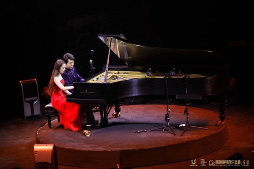 当晚最令人期待的,莫过于郎朗妻子吉娜·爱丽丝的出场。作为德国青年钢琴演奏家,吉娜与郎朗四手联弹了一首《彩云追月》,两位才华横溢的年轻夫妻也是音乐上的眷侣和知心,指尖在黑白琴键上穿梭,配合十分默契。随后,吉娜独奏了德彪西《月光》,现场响起热烈掌声。