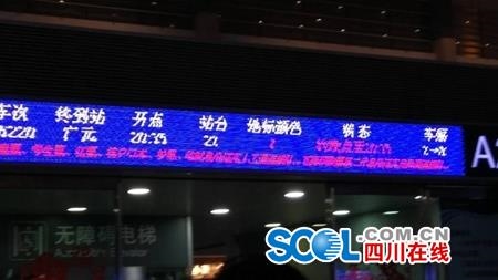 四川在线消息(记者 张庭铭)1月5日晚20点30分,记者从中国铁路成都集团广元车务段获悉,由于太原等地暴雪,导致西成高铁部分列车晚点。