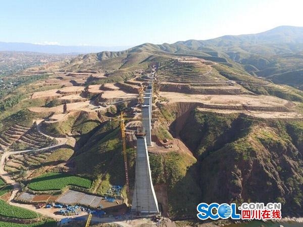 位于攀枝花南站出站段的海控湾特大桥,全长1496米,是国内曲线半径最小的64米节段拼装梁,也是国内铁路桥梁中最大跨度的节段预制拼装预应力混凝土双线简支箱梁桥。中铁二院成昆复线米攀段副总体设计负责人张涵介绍,为保证桥梁与周围景观相协调,该桥采用了16孔64米跨度简支箱梁跨越深谷。期间,总重量2200吨的架桥机在接近30层楼高的80米高空完成全部箱梁施工,其难度不亚于一场高空杂技表演。