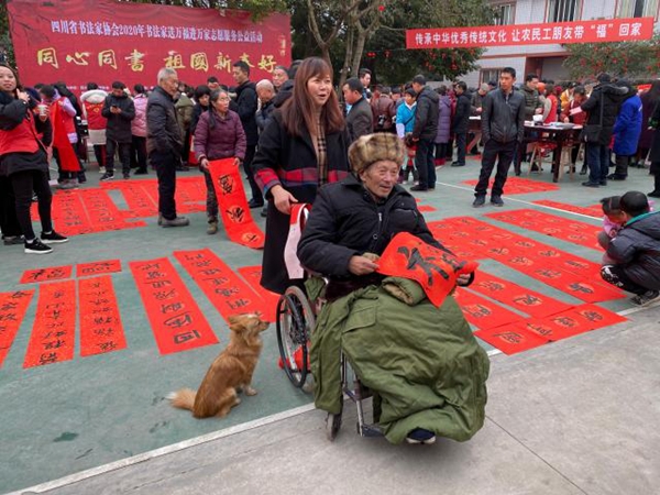 四川省书协主席戴跃介绍,2020年是全面建成小康社会目标的实现之年,是全面打赢脱贫攻坚战的收官之年,以手中的笔墨助力脱贫攻坚是全省书法人的责任和担当。在新春佳节来临之际,四川省书法家协会将组织书法志愿服务小分队深入基层开展送福进万家志愿服务公益活动。以这种接地气的方式,在为群众送上新春祝福同时,也不断丰富当地人民群众文化生活的获得感、幸福感。