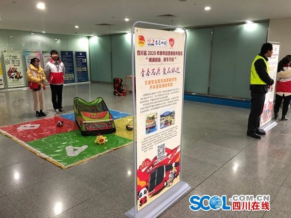 启动仪式上,来自人民银行成都分行、成都高新区锦晖小学和成都虹盾防灾减灾公益服务中心的志愿服务队代表,分别对“防金融诈骗”“垃圾分类”“乘车安全碰撞体验”等春运志愿服务特色项目进行了介绍。而往年的明星志愿服务项目“流动图书馆”今年则首次亮相成都东站汽车客运站,四川少年儿童出版社捐赠了价值3万的儿童读物,让孩子们在候车时可以读绘本、听故事、做游戏,体会阅读带来的静谧与快乐。