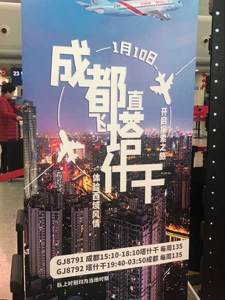 四川在线消息(记者 寇敏芳 王青山 杨昕)1月10日,春运第一天,成都双流国际机场和浙江长龙航空公司联合发布,于即日起正式开通“成都=塔什干”航线。塔什干是乌兹别克斯坦首都,这是成都首条直飞乌兹别克斯坦航线,使得成都与乌兹别克斯坦之间的距离缩短至6个小时。