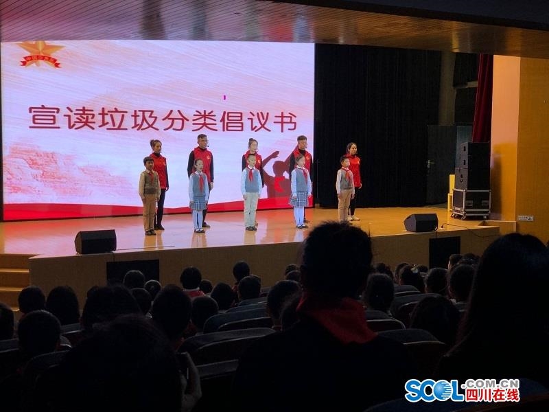 活动上,5名少先队员志愿者和5名青年志愿者通过小手拉大手诗朗诵的形式,宣读了《垃圾分类倡议书》,倡导青少年行动起来,自觉培养垃圾分类好习惯,让成都的水更清、天更蓝,环境更优美、城市更宜居。