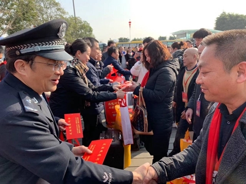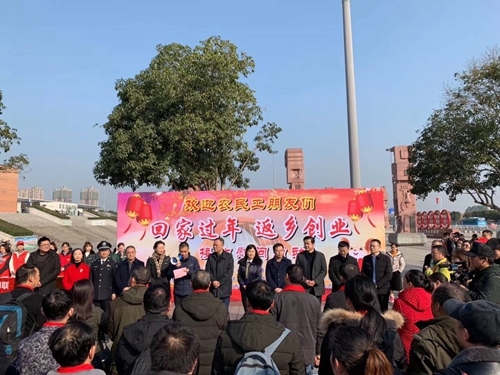 1月11日上午10点40分,德阳籍在京务工农民工返乡接站慰问仪式在德阳火车站广场举行。来自罗江区、中江县的70名在京农民工统一乘坐临客K4219返乡专列,历经33小时42分到达德阳站,德阳市相关部门领导及志愿者冬日里等候接站。
