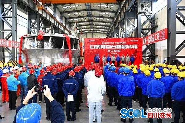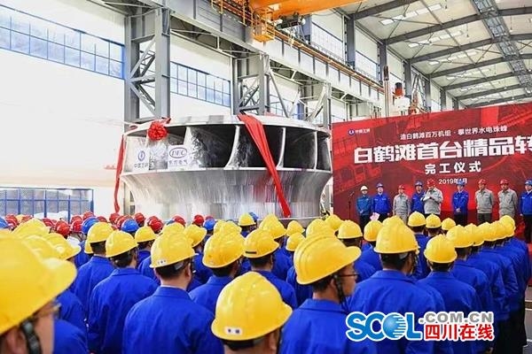 由东方电气集团东方电机有限公司研发制造的白鹤滩水电站首台百万千瓦水轮发电机组的转轮,于2019年1月12日上午在电站工地的转轮厂房正式完工,并较原计划提前交付。东方电气供图