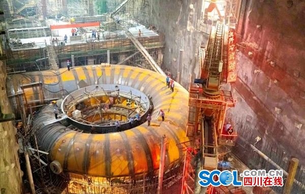 2019年4月30日,首台白鹤滩百万千瓦水轮发电机组蜗壳安装完工。东方电气供图
