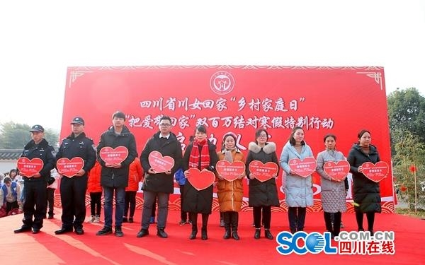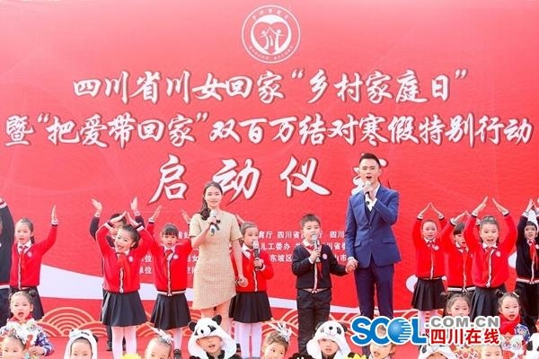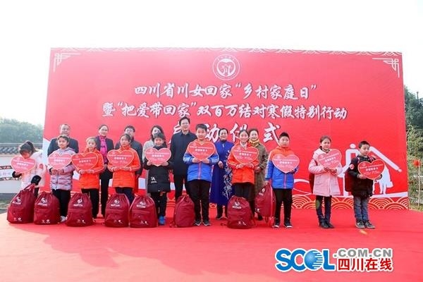 四川在线消息(记者 李丹)1月12日上午,由省妇联、省教育厅、省民政厅、省公安厅、省司法厅、省政府妇儿工委办、共青团四川省委共同主办的川女回家——“乡村家庭日”活动暨“把爱带回家”双百万结对寒假特别行动在眉山市东坡区尚义镇龚村正式启动。