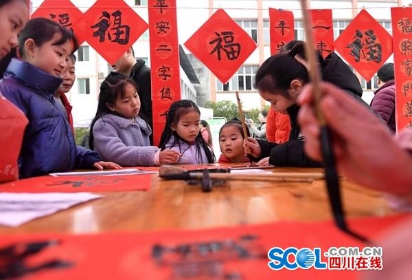 四川在线消息(记者 李向雨 摄影报道)1月13日,四川省南充市蓬安县杨家镇开展关爱农民工服务主题活动,通过农民工专场招聘会、义写春联、文艺演出、农民工创业成果展、健康义诊等系列活动,增强返乡农民工的获得感、幸福感和安全感。