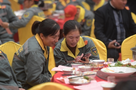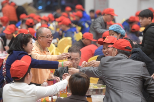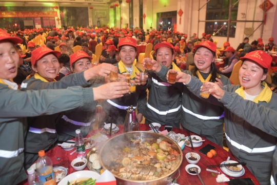“你说得对,这么远都有家乡的政府来关心我们,好多人都羡慕我们四川人哦。来!大家一起为我们四川人干杯。”在李大芳的提议下,同桌的川籍农民工罗山芬、王远会、余春梅等纷纷端起茶杯,彼此大笑着送上新年的祝福。