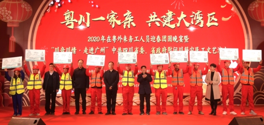 省委省政府主办的“粤川一家亲 共建大湾区”川音川情——走进广州文艺慰问演出暨2020年在粤外来务工人员团圆晚宴,温暖了每一位在场的川籍农民工的心。让长年在外打拼的农民工们,不仅吃出了幸福、看出了喜悦,更坚定了对明天生活更美好的信心。