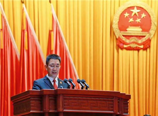 1月15日上午,泸州市第八届人民代表大会第五次会议在巨洋国际会议中心开幕,泸州市中级人民法院院长吴洪汛向大会作工作报告。周梦颖摄。