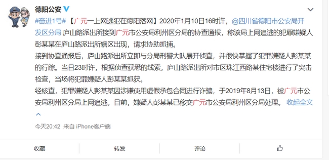 1月15日,记者从德阳市公安局获悉,广元一上网追逃的诈骗犯逃跑到德阳,结果还是遭起了。