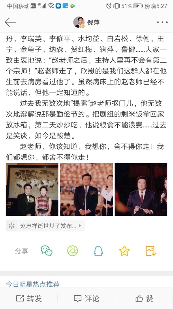 倪萍悼念赵忠祥: