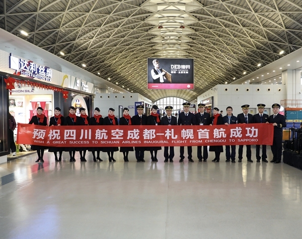 四川在线消息(李丹 记者 王眉灵)今天上午(1月17日)10点33分,载有213名旅客的3U8791航班从成都双流国际机场起飞,标志着四川航空成都直飞札幌新开航线正式启航。该航线的开通,填补了成都直飞北海道的航线空白,也是川航继东京、大阪之后开通的第三条成都始发赴日航线,为旅客提供了更多的出行选择。