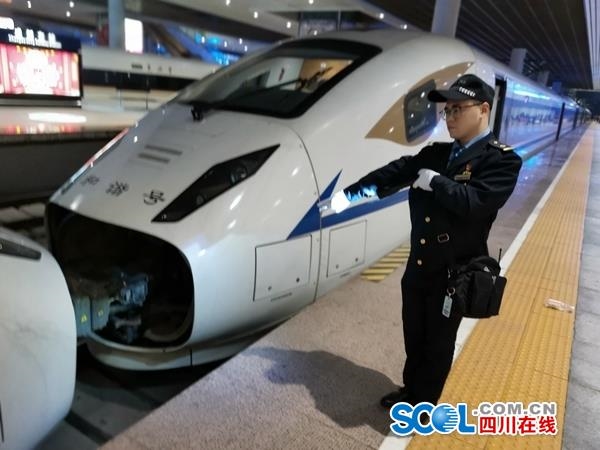 四川在线消息(李国建 记者 王眉灵)1月17日凌晨2时2分,由中国铁路成都局集团有限公司成都动车段担当的今年春运首趟载客夜行动车组D4935次从成都东站开出,向广州南进发。